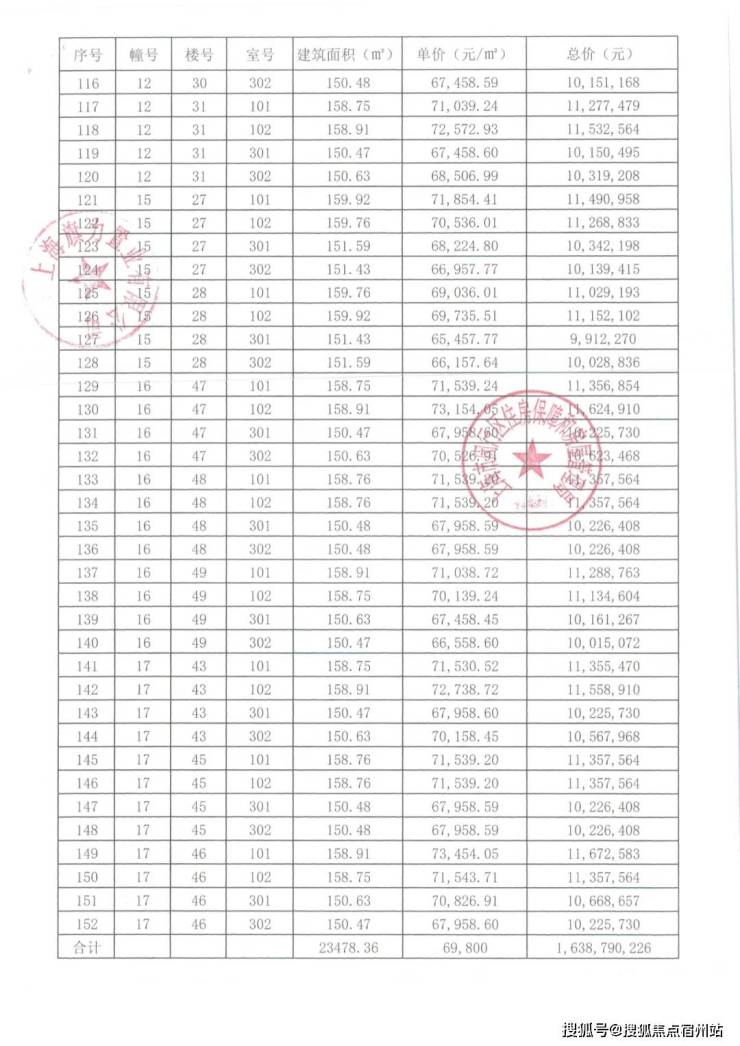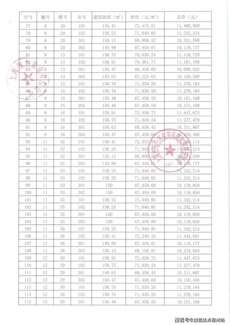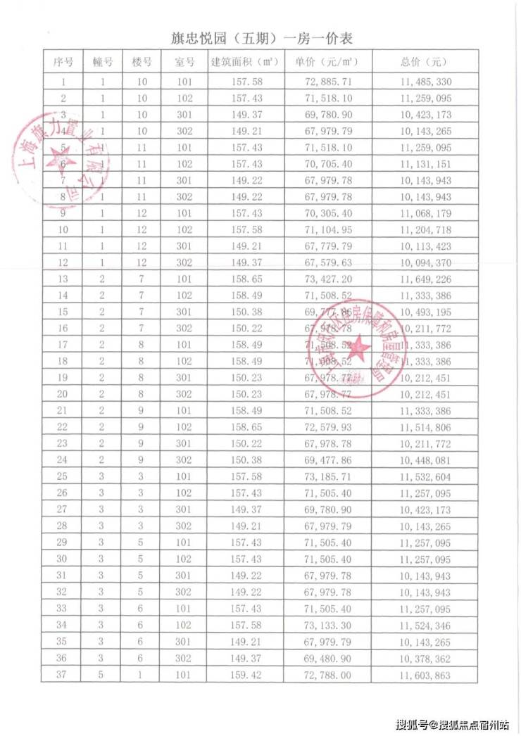 项目一房一价表▼