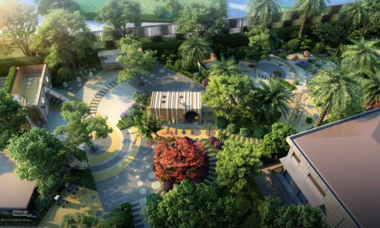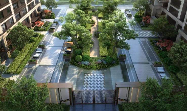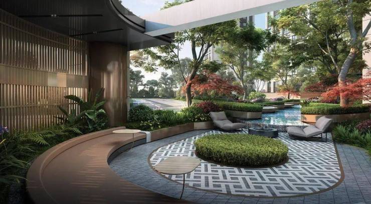 项目园林由业界知名的奥雅设计操刀设计,打造了一个”翡光礼境“景观社区。