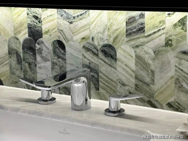 卫生间大量采用 奢石和石材 ,比如主卫柜体墙面就是香格里拉翡翠拼花,龙头是冷热分离式,成本更高。