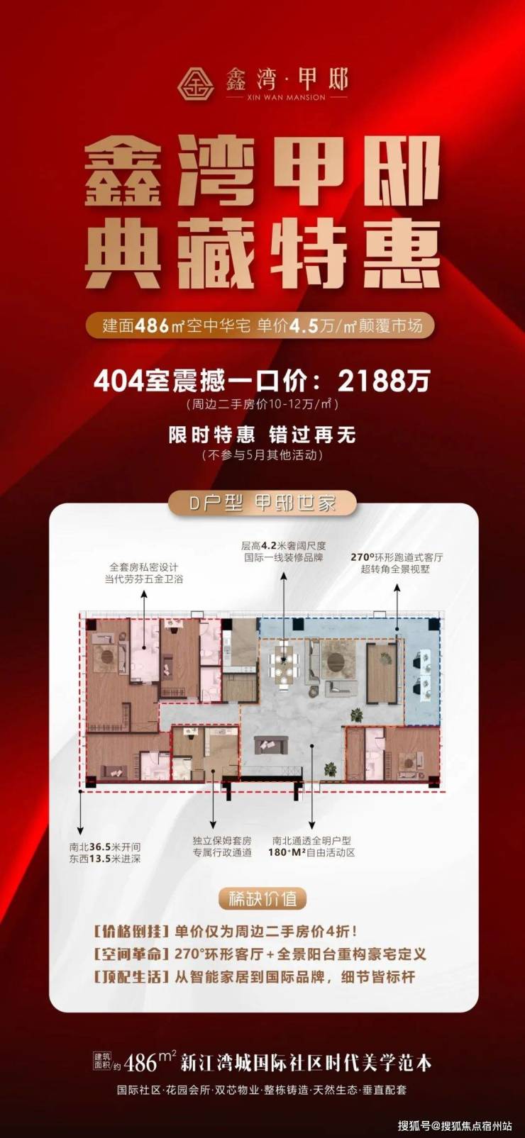 新出特价房!单价𝟒.𝟓𝐰/𝒎²仅为周边二手房价4折,新江湾城【鑫湾甲邸】486㎡带300㎡私享花园露台