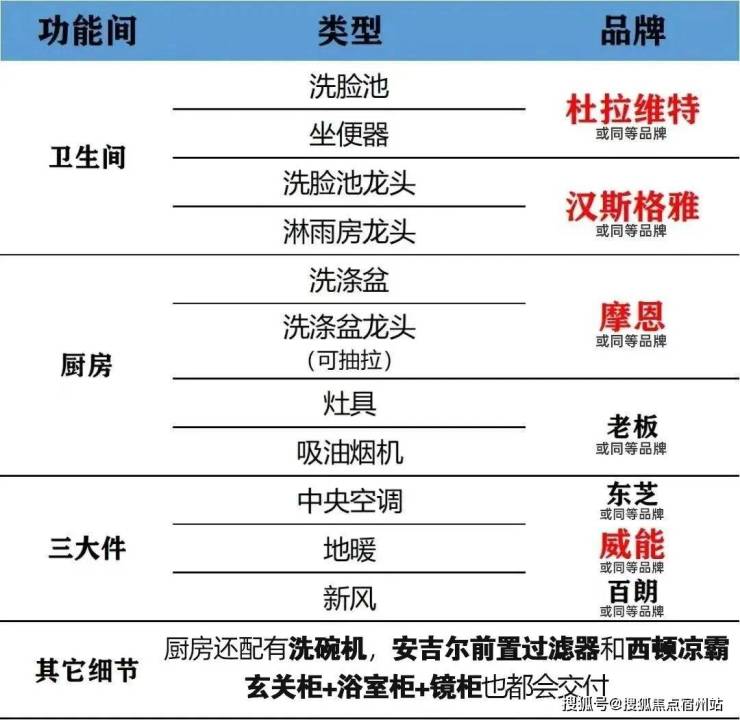 清一色的 进口三大件 ,卫浴和橱柜甚至选用了 杜拉维特、汉斯格雅、博洛尼等国际一线大牌、奢牌, 如此装修阵容,在这个价位实属罕见!