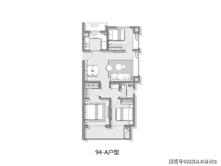 建面约94㎡3房1卫户型图: