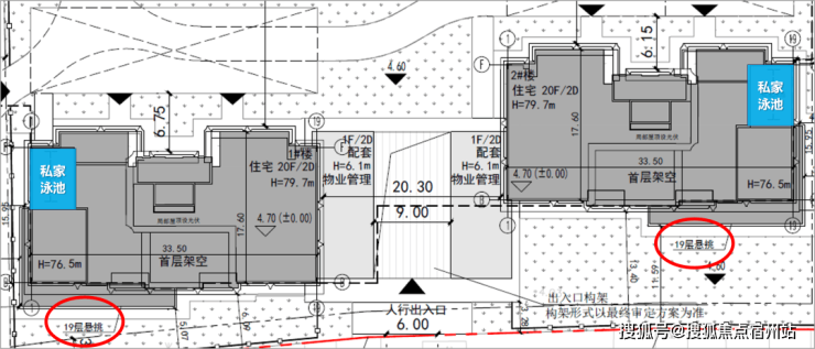 蕞南端的1#和2#楼均配套有私家泳池,还在19F采用了住宅楼当中较为少见的悬挑工艺,延伸出了一定的使用空间,预计就是做类似于“悬挑泳池”的。这里应该就是传说中的“超级大平层”所在位置。
