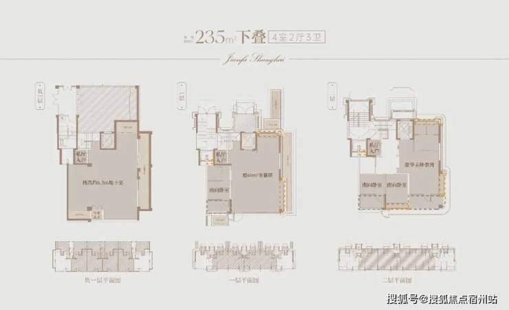 建面约235㎡上叠,则为三代同堂的家庭提供了解决方案。北向首层私享建面约25㎡的入户花园;上叠三层以无界厅堂为核心,约10.4米开间让光线无遮挡漫入;上叠四层三间卧室均朝南,实现全明采光;与市场常规上叠不同,建发海宸上叠拥有建面约80㎡地下空间(双层)与建面约50㎡私家阁楼,真正实现“空间超越面积”的价值升华。