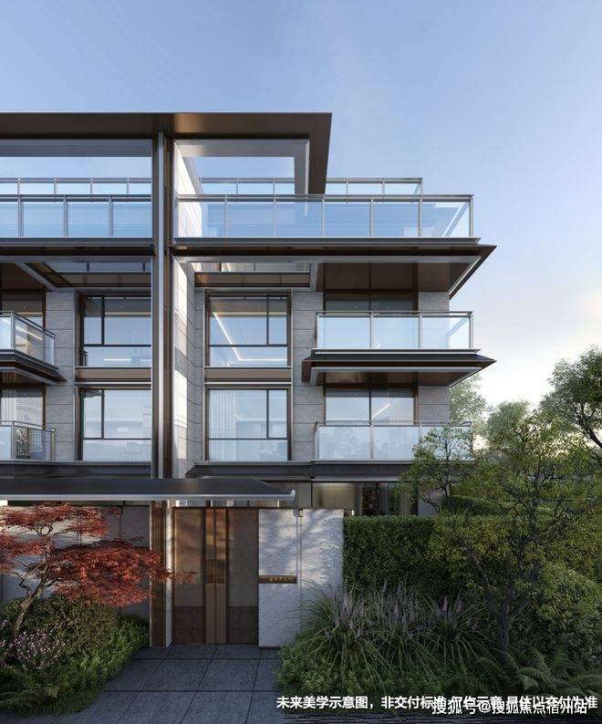 润雲金茂府的外立面融合了宋代美学与现代设计✅✅润雲金茂府售楼处电话:400 - 8824 - 258✅✅以铝板与天然石材相结合,搭配大面积落地玻璃幕墙。