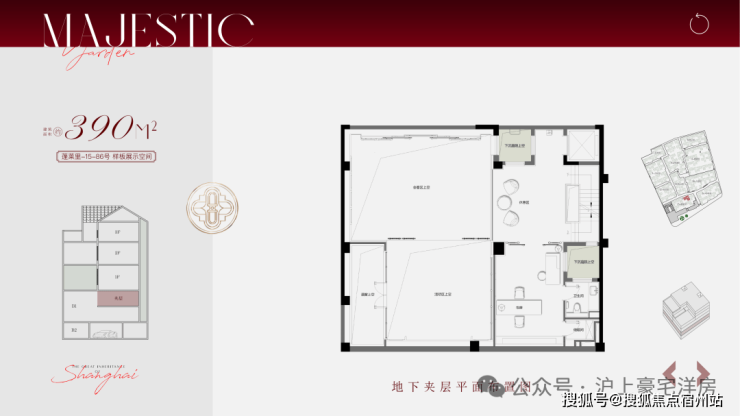叠拼面积段约195-310㎡,分为1-2F下叠、3、4、5F为中间的平层面积236㎡,6-7F为上叠,计56套。