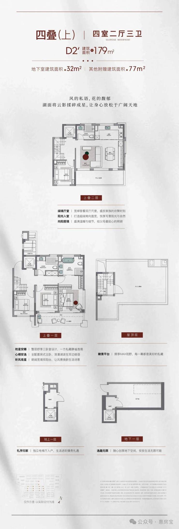 约179㎡四叠别墅上叠户型,有天有地+高得房率+奢阔尺度,买到即赚到!