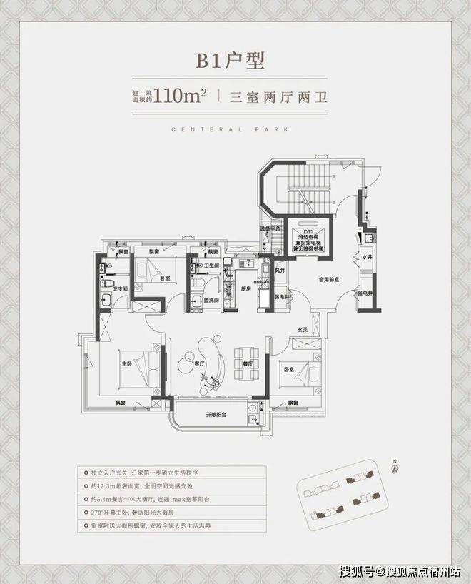 ✅✅中环铂樾售楼处电话:400 - 8824 - 258✅✅建面约110㎡边套(B1户型),1个宽面阳台、5个飘窗,整体南向面宽做到了约12.3米,大横厅面宽约5.4米,带来超大空间体验和充足通风采光。✅✅中环铂樾售楼处电话:400 - 8824 - 258✅✅