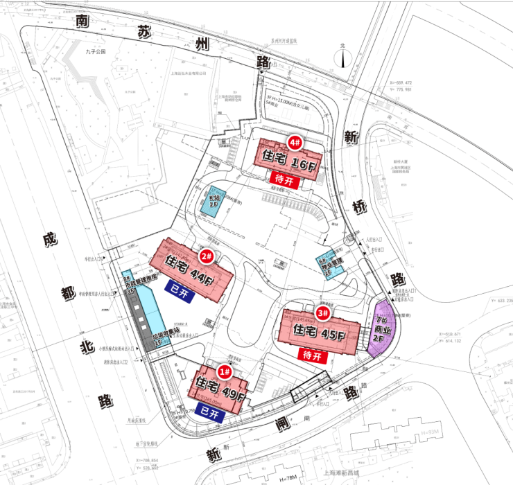 1#地块:分为南北两块:南块,东至新桥路,南至新闸路,西至成都北路,北至成都北路1012弄;北块,东至新桥路,南至新桥路51弄,西至九子公园,北至南苏州路。未来主力产品为超高层住宅。