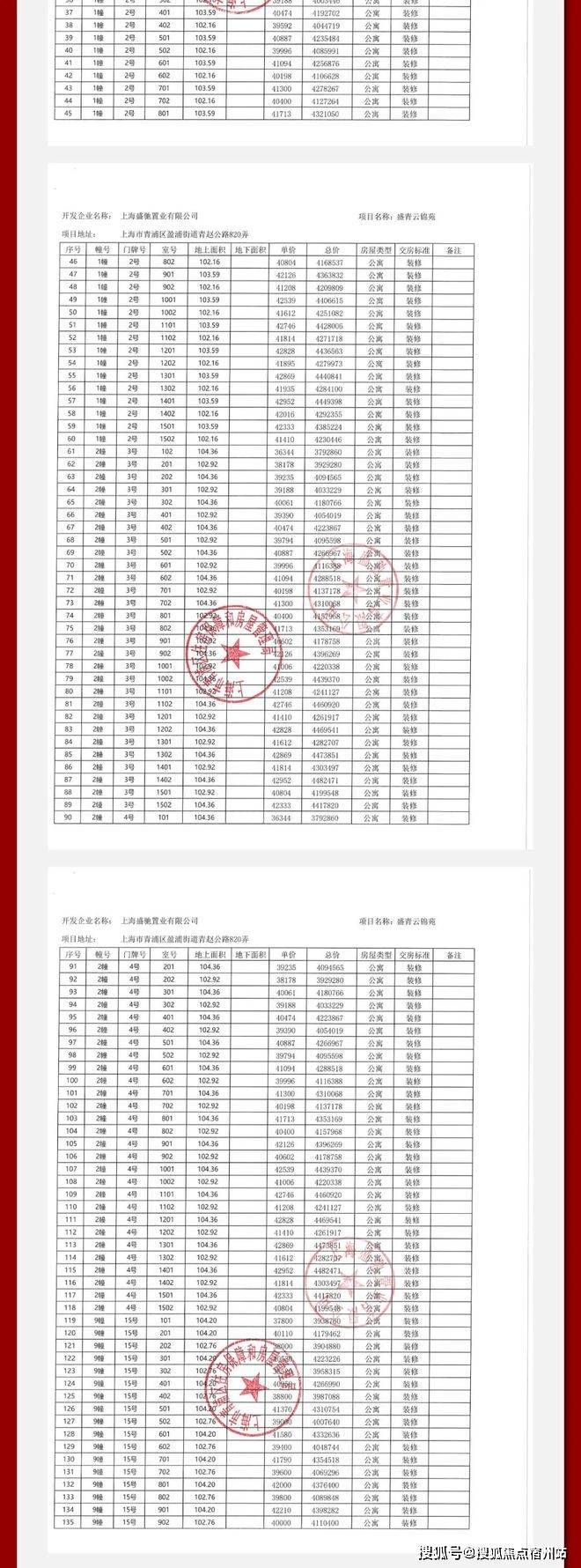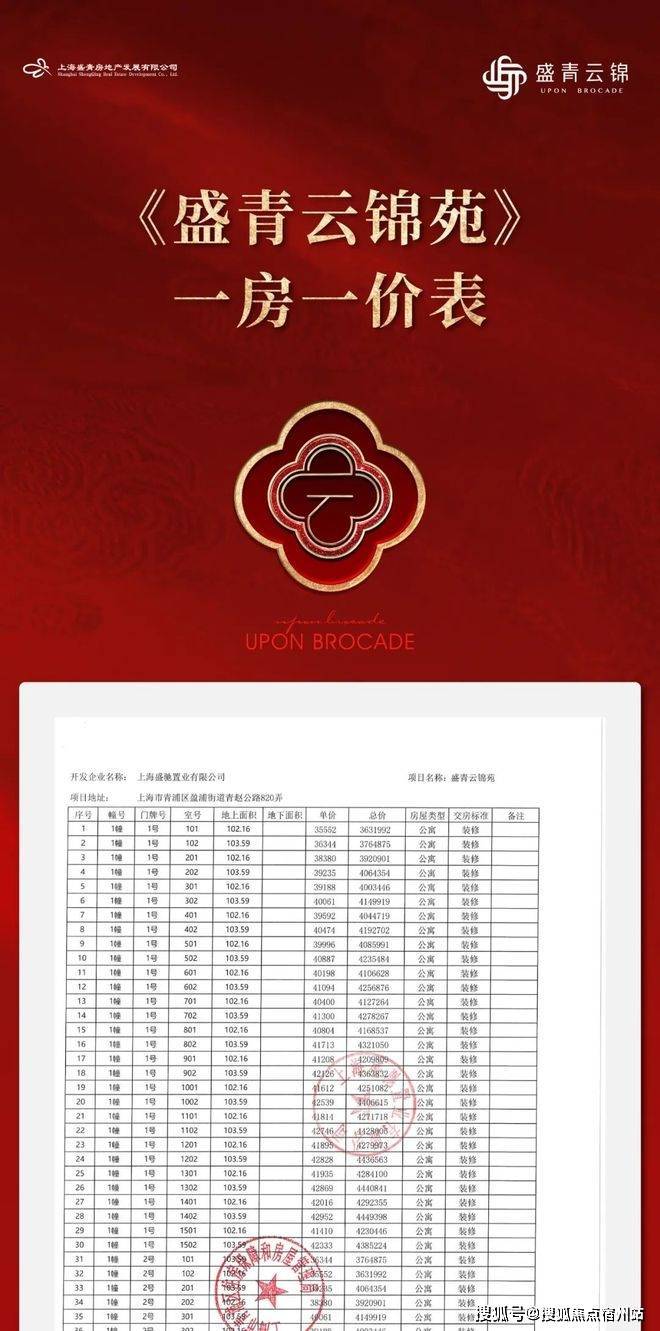 最新消息,一房一价表发布!青浦新城「盛青云锦」建面约103-145㎡三房四房,均价4.45万/㎡!