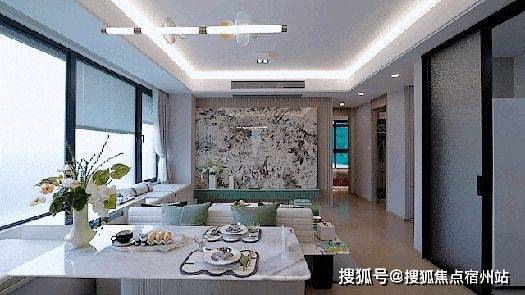 客餐厅一体化设计,三面采光,超40㎡朗阔空间,✅✅盛青云锦售楼处电话➡☎:400 - 8824 - 258✅✅宛若一个通透的玻璃盒子,与等面宽的开敞厨房一体,实现超广角视觉感受;餐厅配备岛台/吧台,增强家庭聚会社交属性。