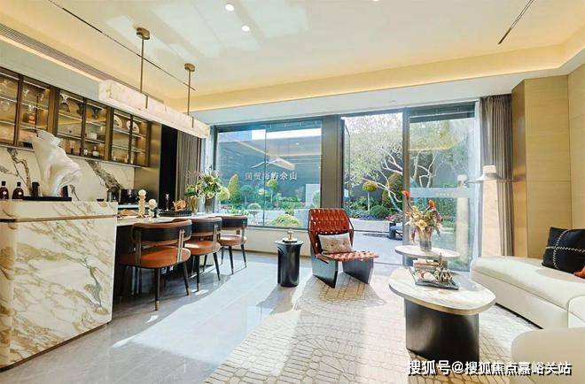 开放式厨房+南向宽约6.85米的朗阔宽横厅设计✅国贸海屿佘山售楼处电话➡☎400-8824-258(预约热线)✅✅采光效果极佳的同时,家人间互动交流空间奢阔;
