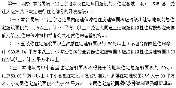 根据项目建设需求: 地块规划住宅下限1565套,地块要求一半全 装修,中小户型比例为60%以上,装修集采标准为2500元/平。