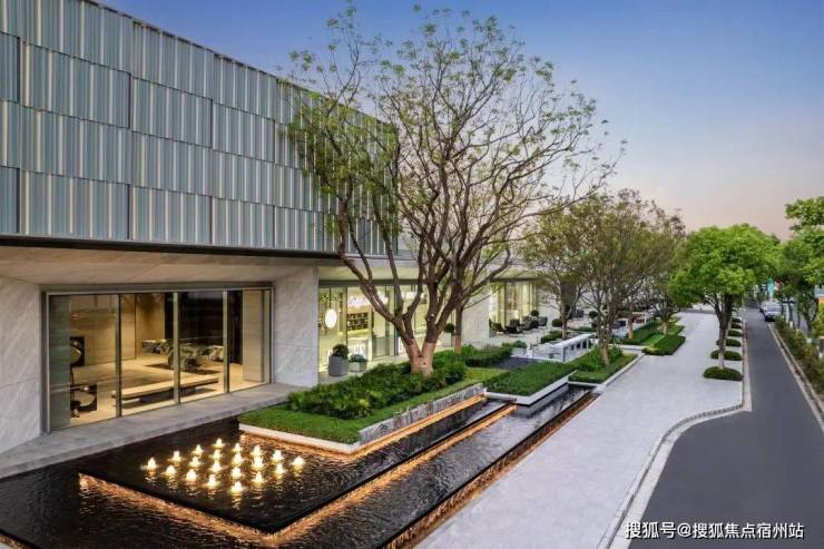 同时,部分采用天青色釉面陶板,超扁平形制,同样搭配大面幅落地Low-e三玻两腔玻璃,让建筑像是妙手剪裁的艺术品般行云流水,更大程度的为业主带来宽绰视野,体验摩登生活。
