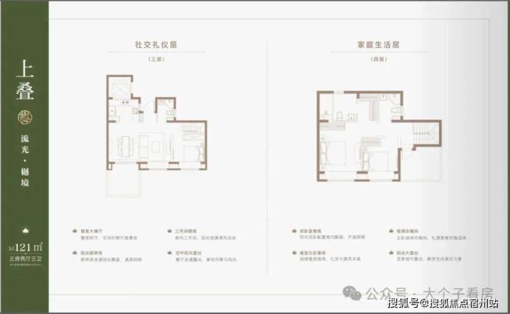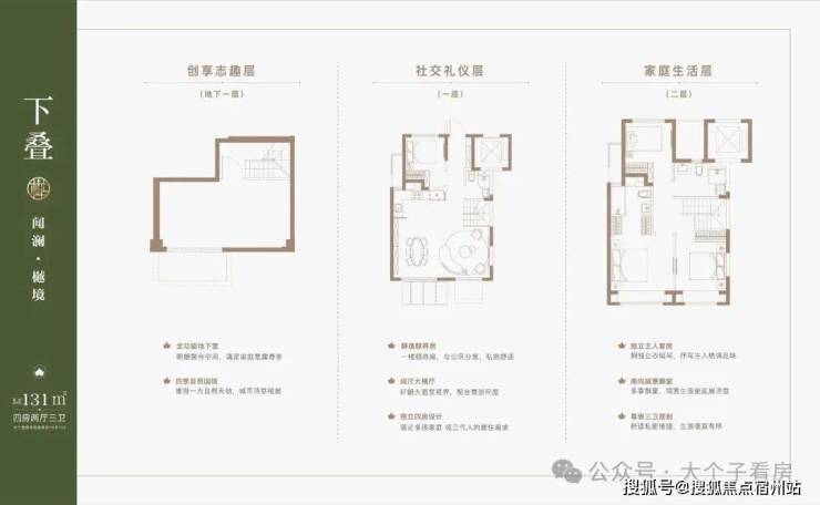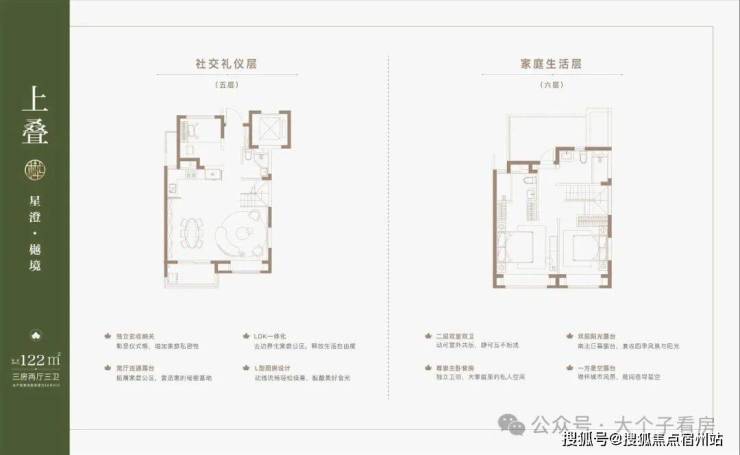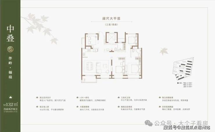 叠墅产品分为4F、6F层叠加, 主力产品建面约 约122-133㎡上叠,132㎡大平层,131-145㎡下叠。