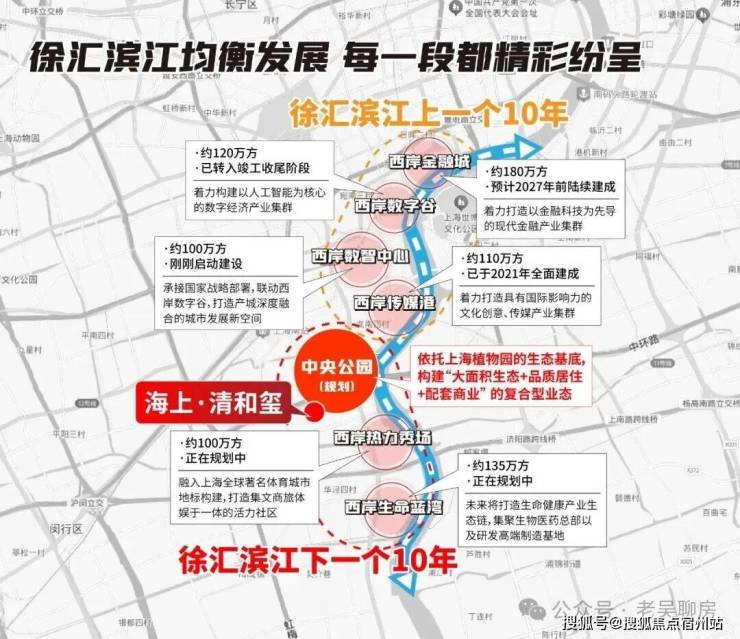 徐汇滨江的开发逻辑向来清晰:以“生态优先、产居融合”为核心,让居住与自然、休闲深度绑定。如今北段已开发饱和,承载下一轮发展势能的,正是海上·清和玺所在的第七组团(中央公园组团)——这里不仅延续了滨江的优质基因,更以“更强生态属性”打造差异化优势。