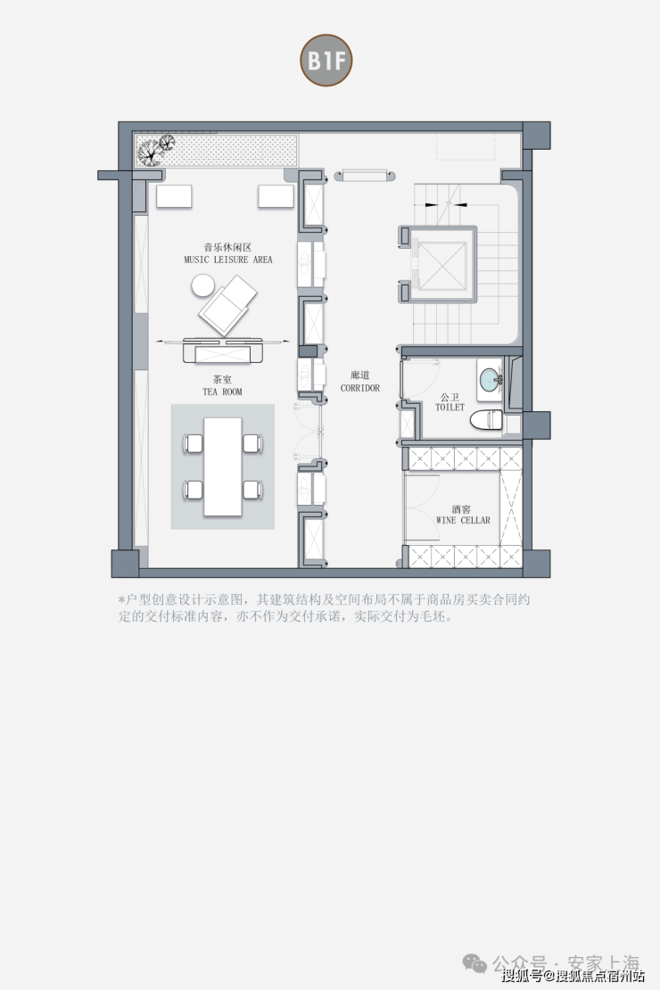 地下1层 约4.2-6米的灵动空间 ,可随心改造为私人博物馆、恒温酒窖、品茗茶室或IMAX级家庭影院……