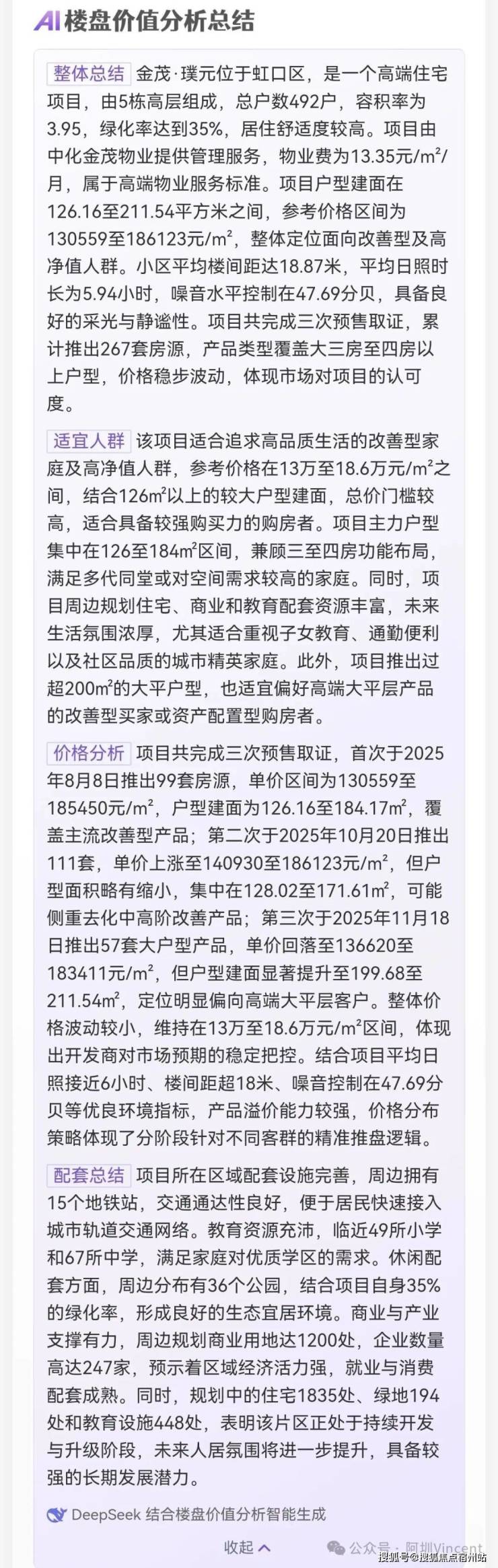 虹口内环科技住宅「金茂璞元」三批次即将加推200㎡4房,前期少量建面约130-170㎡户型可选,均价16.81万/㎡,实景示范区&样板间