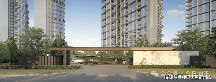 在小区大门装饰墙,选用北京钓鱼台国宾馆同款石材,意大利进口石材 鱼肚白,国内皆为存量,用一块少一块,而项目一次性用了17米,据悉每平造价高达2万。