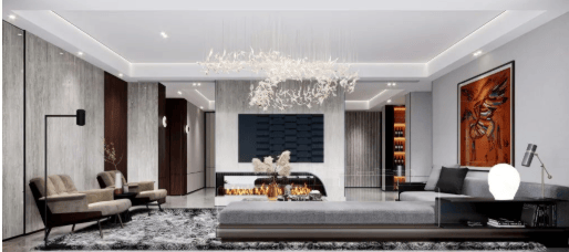 在 主卧的打造上是经典的“酒店式”套房设计,在保证私密空间不受打扰的同时,还拥有清晰流畅的动线快速抵达其他功能区。
