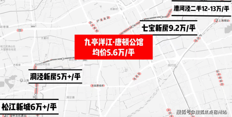 其次,放眼全 上海均价“5”字头 的板块 ,目前只有 洞泾、泗泾,川沙、周浦、航头、新场、曹路等 比较偏僻的板块,要么距离轨交远,要么周边城市界面不成熟。实在是让人难以下手!