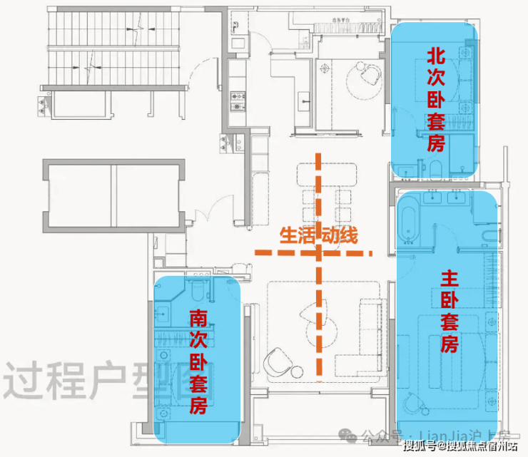 185㎡户型采用“独立私梯+独立门厅+室内玄关”三重防护,南向双套房保障私密性;