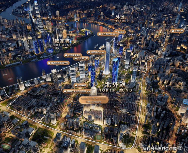 项目南侧的北外滩核心区,更是发展的重中之重。 1/5的土地上,将承载了北外滩超四成的建筑体量 。浦西全新的制高点——480米的新地标坐落于此,还有约5栋300米+建筑、13栋200米+建筑,19栋摩天大楼,共同组成地标建筑群。
