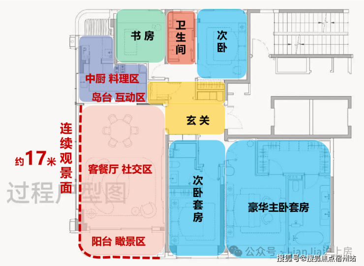 228㎡户型打造“主卧即度假”豪华套房,客餐厨与阳台形成约17米连续观景面,动静分离互不打扰。