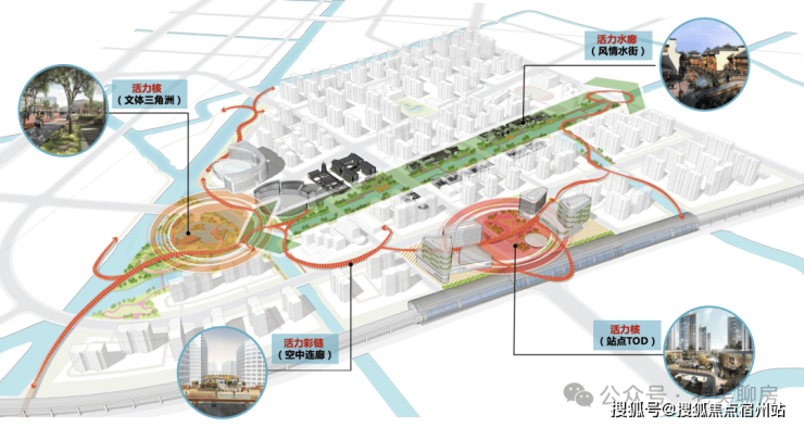 作为城市发展商角色的中交城投,正在为华新未来的发展谋划一盘“大棋”,打造以示范线-徐乐北路站TOD为主导,通过以历史文脉、科创体验及绿色生态为核心的复合站前体验区;打造科创TOD街区,融合了东方水镇,生态与文化的交融,形成“街、桥、寺”的水镇空间。