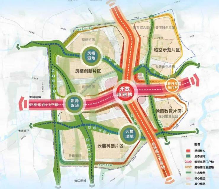 2025年,《虹桥国际中央商务区及周边地区专项规划》草案公示,世界大虹桥将统筹发展空间扩展到535平方公里,提出“一核两轴四片、五带三湿八组团”的整体格局,宣告着一个崭新时代已然来临。