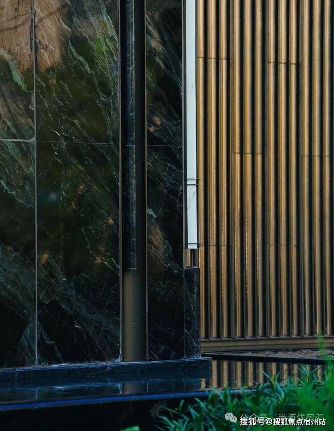 落客区水景底部,铺陈着巴西银河金奢石,深邃的黑色底板上,金色纹理自然随机分布,宛若一条被珍藏的微缩星河 ✅金茂璞元售楼处电话:400-8854-706✅︎✅︎✅