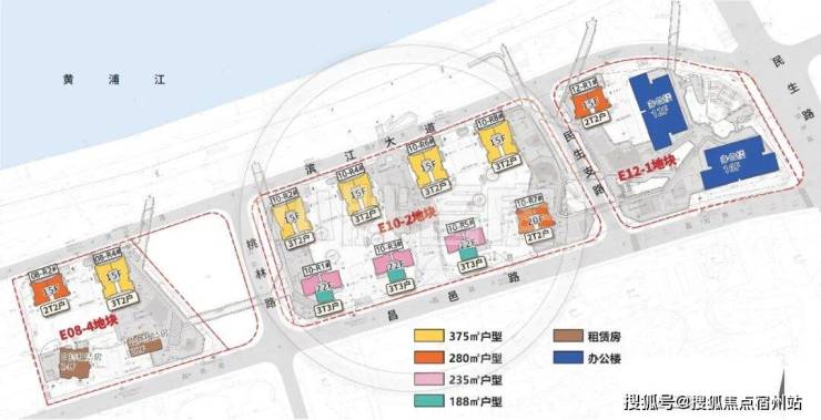 【太古北滨江项目】共提供约643套可售高层住宅,覆盖包括约188-235-280-375㎡的4种户型。首开E08-4地块,280和375㎡,50套。