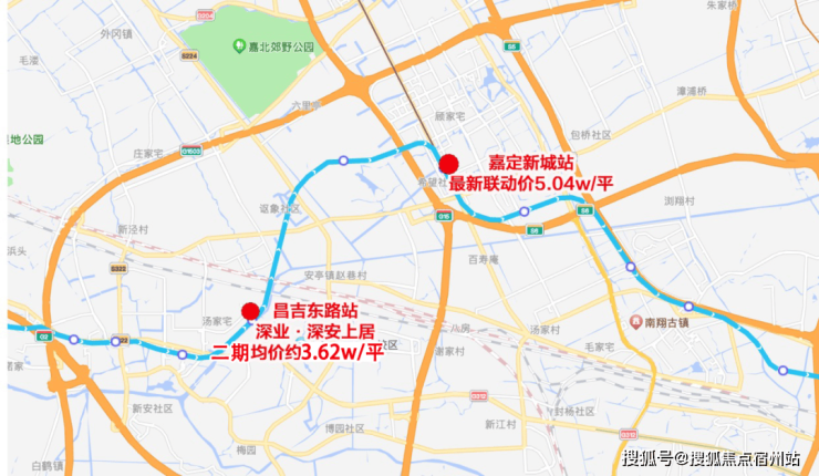 随着去年房地联动价的调整,涨价趋势明显。往前两站的嘉定新城站,在去年土拍中,嘉定新城G09-2地块的联动价攀上5.04万/m²。也就是说,未来想在嘉定买百平米新房, 上车门槛直接提升了一个档次 。