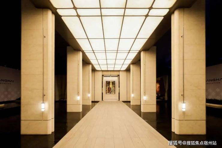 通过迎宾楼,便来到了约20米长的精神游廊 ,该精神游廊同源招商玺 “树宅相守”的设计手法,更致敬建筑诗人斯卡帕“以自然光感去创造时间驻留感”的理念 ,通过对光线、材质与空间的创新打造,营造充满宁静的归家场域。