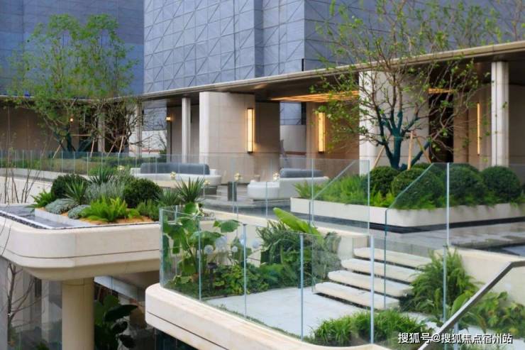 点睛之笔在于 4层悬浮式阶梯, 设计理念据说来自全球十二大奢华酒店之一的迪拜丽晶公寓, 每一个观景露台都种植着不同的植被,一步一景,更重要的是,不同的露台对应着不同的观景视野点,将不同高度的下沉式庭院景观,通过极其优雅的方式传递给了业主。 这个归家体验可以说是拉满了!