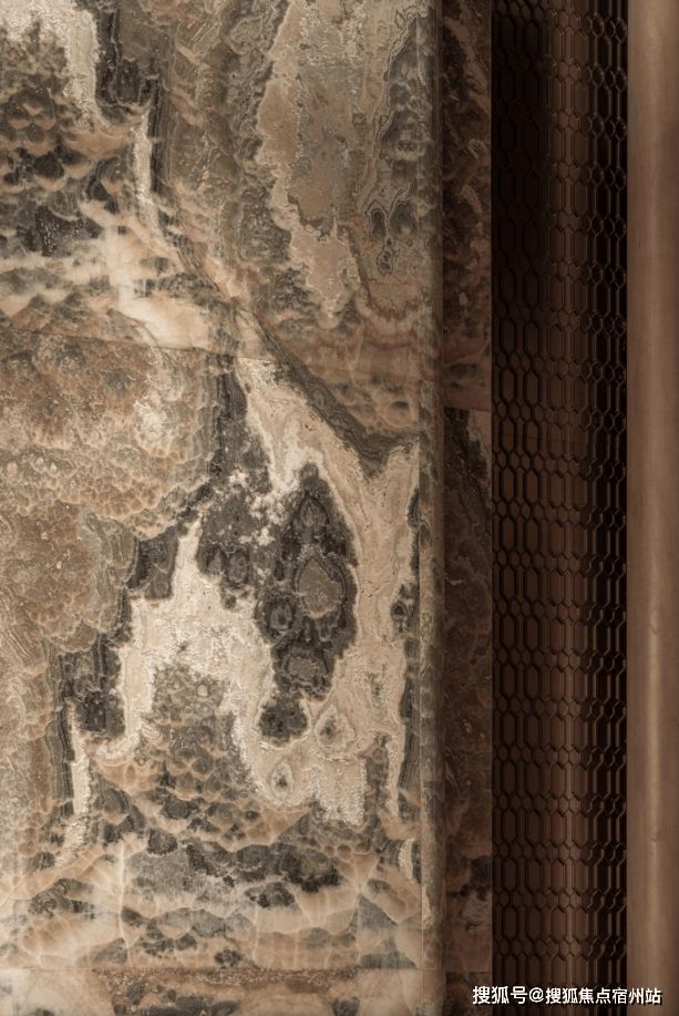 整个公区的引入沉香米黄、透光云石、安哥拉黑、福鼎黑、橙皮红、宝格丽紫 等近二十种全球奢石,宛如一座流动的奢石博物馆。