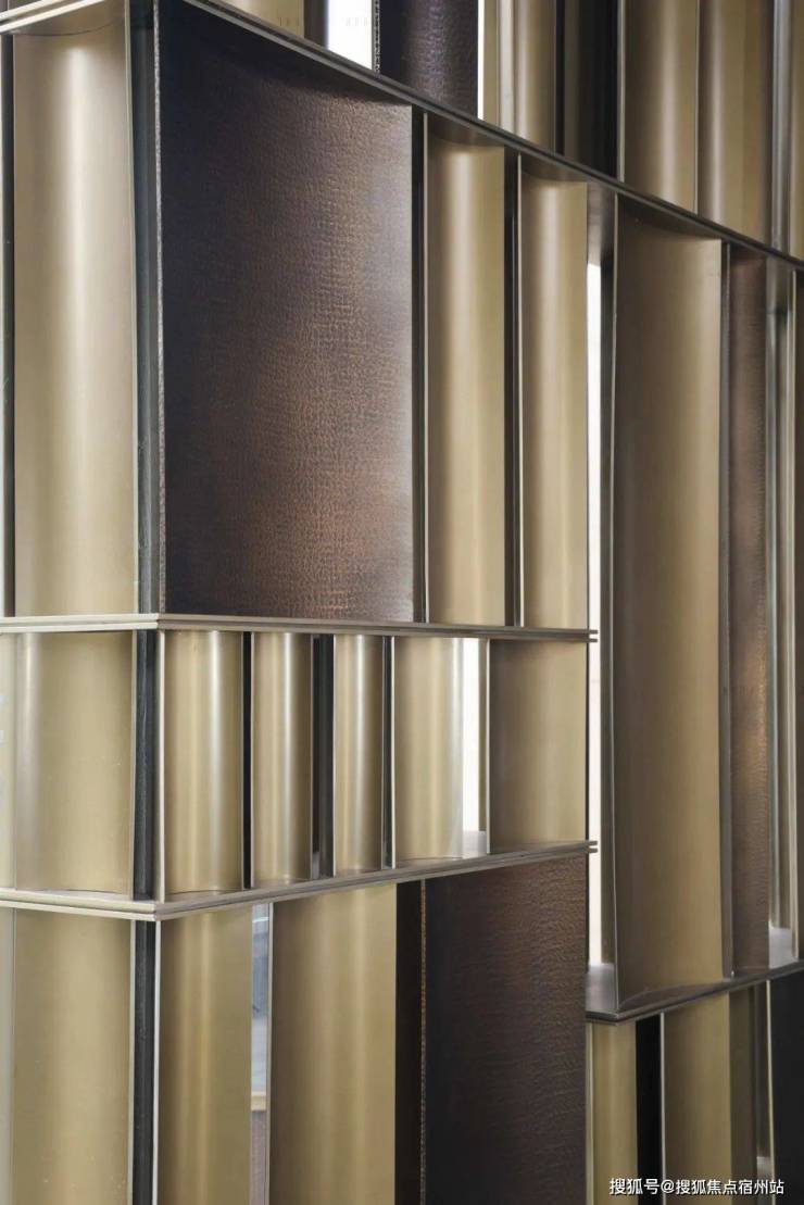 一块游廊上的锤纹铜板深深打动了我,锤纹最早源于金银铜器的加工,“手落为一锤 四锤为一纹” ,这块铜板需要通过匠人千百次的手工捶打才能形成阡陌纵横的纹路变化 。这样的手工慢艺,在招商序的会所之中不止一处,在如今机械化模板化的时代之下,这份用心实为珍贵。