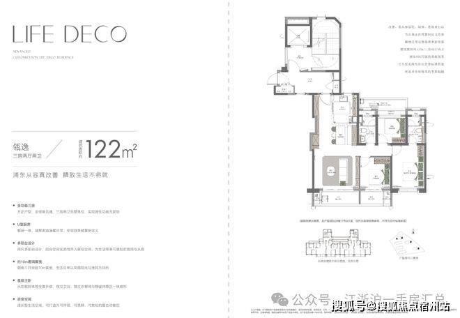 建面约122㎡3房,这个面积做3房,同时还附加了3阳台+飘窗+可创变空间等优势。
