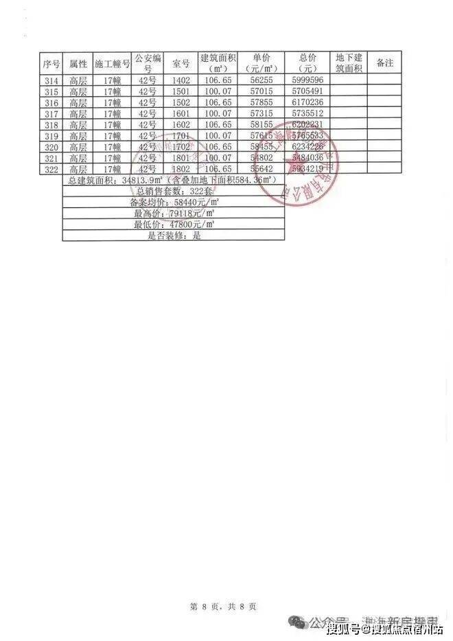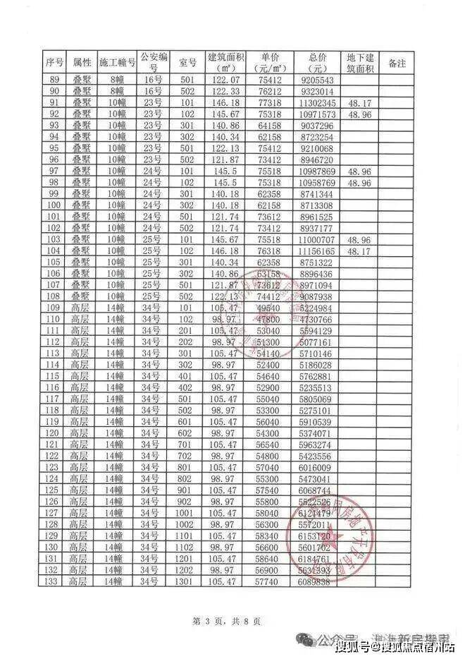 虹桥嘉悦府项目一房一价表:
