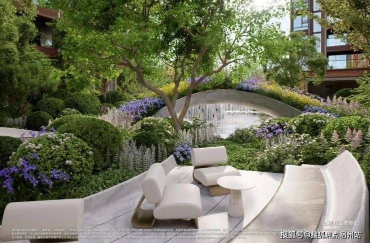 外滩瑞府打造约3200㎡中央花园,以度假式造园理念为核心,提炼印象派艺术名画灵感,打造六大主题园境。