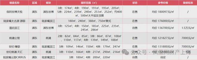 当前,浦东滨江主要有7个楼盘在售或待售,为不同需求的买家提供了多元选择。