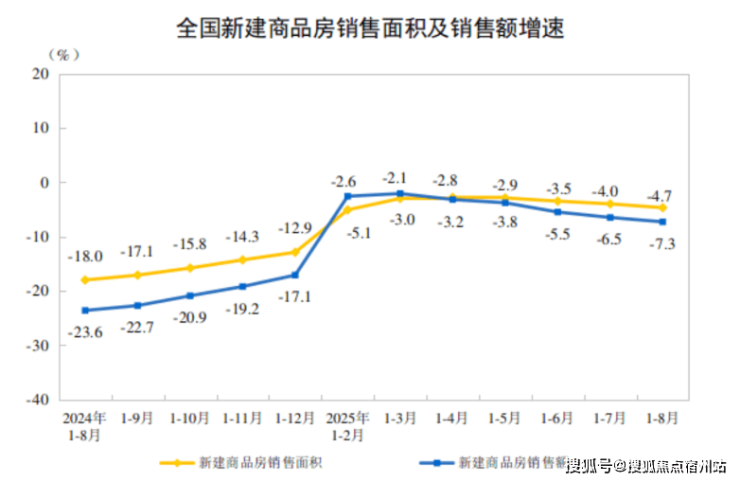 3、百强房企销售情况。据中指研究院数据统计,2025年1—8月中国TOP100房企销售总额为23270.5亿元,同比下降13.3%,降幅与1-7月持平。