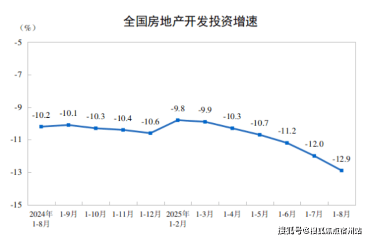 1、房地产开发投资情况。今年1—8月,全国房地产开发投资额为6.03万亿元,同比下降12.9%;其中,住宅开发投资额4.64万亿元,同比下降11.9%。
