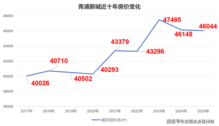 据克而瑞数据统计,青浦新城2017年房价就已经达到4万/㎡,最近两年更是涨到了4.6万/㎡。