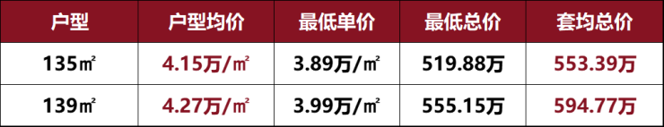 据一房一价表计算, 这两个个户型的套均总价约575万 ,与区域内竞品相比优势非常明显,毕竟同样500万级在板块内只能上车一个110㎡以内的户型。