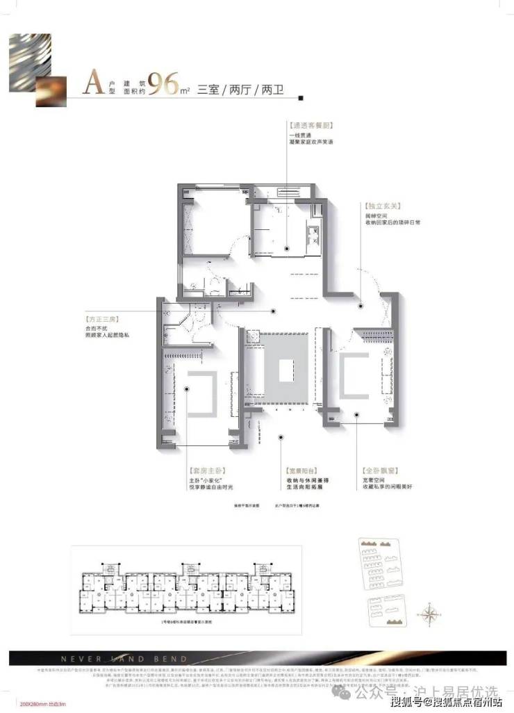 建面约96㎡精质三房,一步到位舒适人居: 该户型方正格局、南北通透无连廊,既容纳二人世界的浪漫,也可将三口之家的幸福一并珍藏。