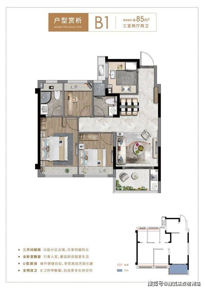 中铁世纪尚城售楼处电话4008569058☑️☑️约85 平三房户型,更是做到了三开间朝南,全卧室飘窗,拥有超大赠送面积,全明双卫,甚至主卫也附带飘窗,实用性拉满,而且该户型大部分房源总价在230万左右!中铁世纪尚城售楼处电话4008569058☑️☑️