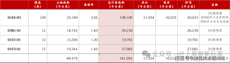 地块总占地面积33189方,容积率3.26,总建面176334平方米,地上计容建面108196平方米,地上不计容建面8704平方米,地下建面59434平方米。