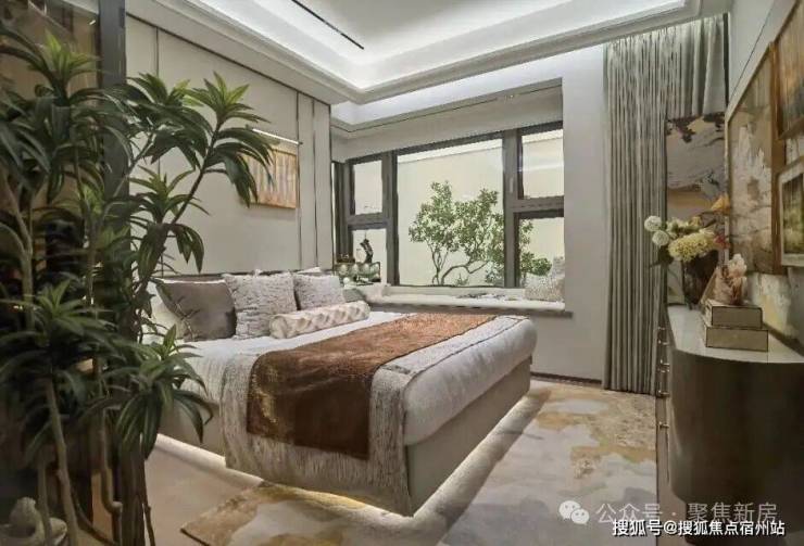 主卧套房设计,带270°转角飘窗+卫生间,拥有超棒的采光及视野,让业主有更好的私密性和生活舒适度。