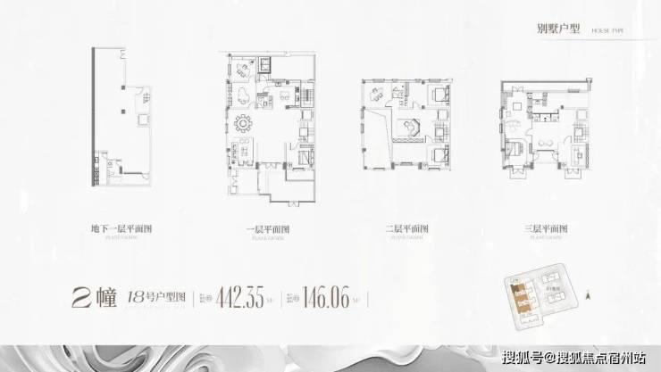 D1地块:约2.1万㎡小高层及联排与独栋,共98套,套均面积282㎡。